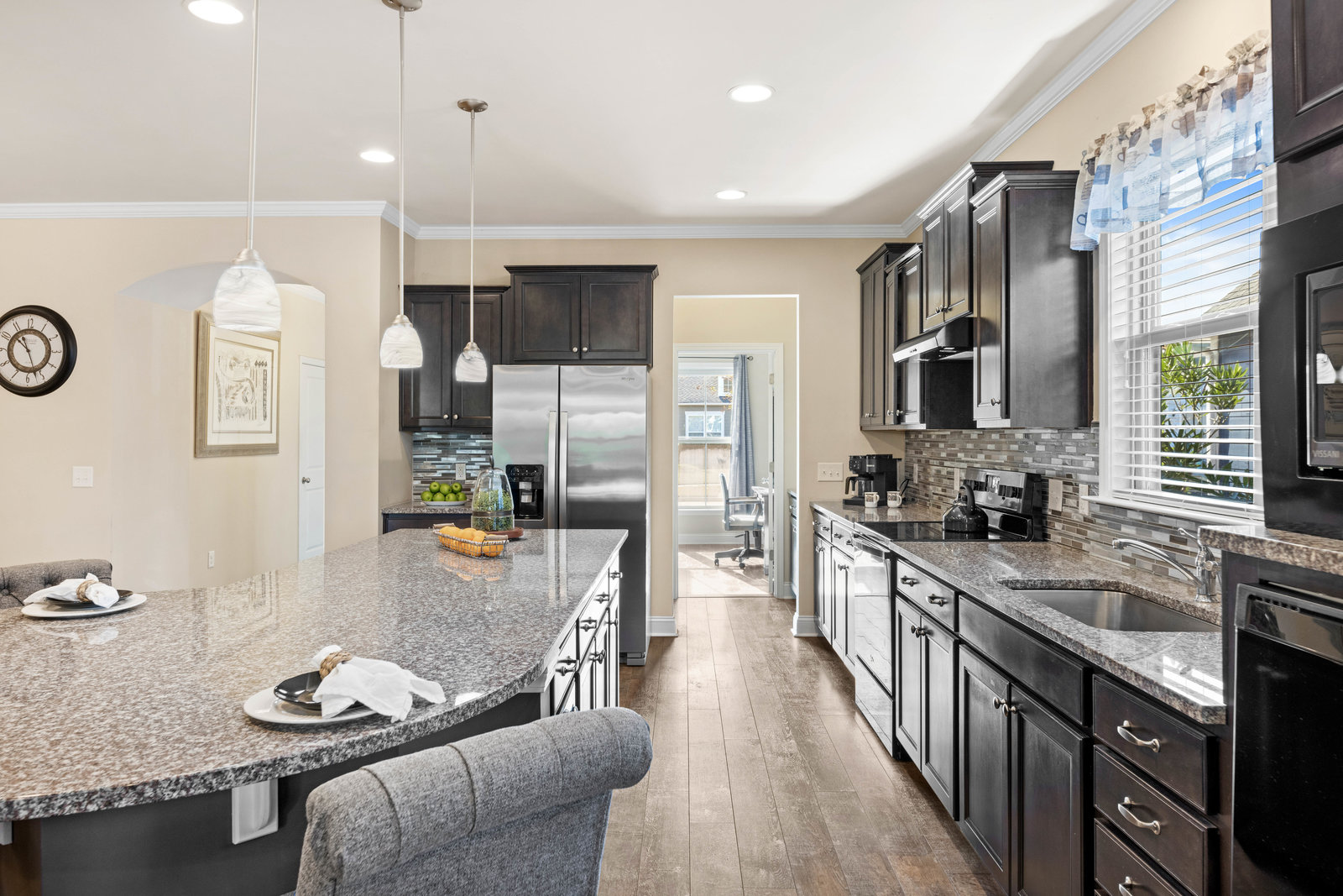This home in Dell Webb in the Riverlights community comes with a whole house generator for peace of mind! Home has accessible primary bathroom, kitchen and entry way. The floor plan is designed for easy one level living with an additional guest suite upstairs for family or friends. Discover the expansive Martin Ray model by Pulte Homes, offering 4 bedrooms and 3 baths within an open-concept layout. The gourmet kitchen features a large granite island, seamlessly connecting to the dining and living areas, ideal for entertaining. A spacious sunroom opens to the back patio, providing a serene retreat. The front room serves as a versatile space, perfect for a home office or den. The main level includes three bedrooms, with the primary suite boasting a generous bath. Upstairs, a den accompanies an additional bedroom and full bath, offering privacy for guests. Located in Del Webb Wilmington, a premier 55+ community, residents enjoy exclusive amenities such as indoor and outdoor pools, tennis, bocce, and pickleball courts, fostering an active and vibrant lifestyle.